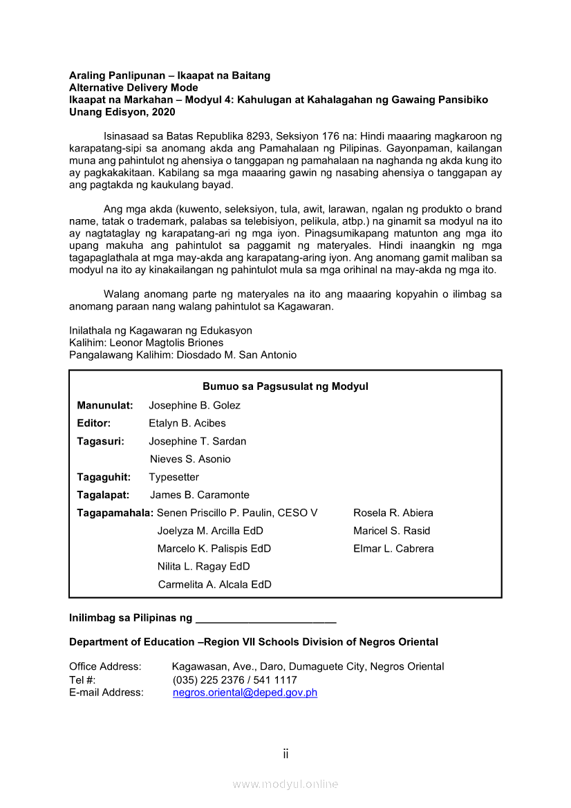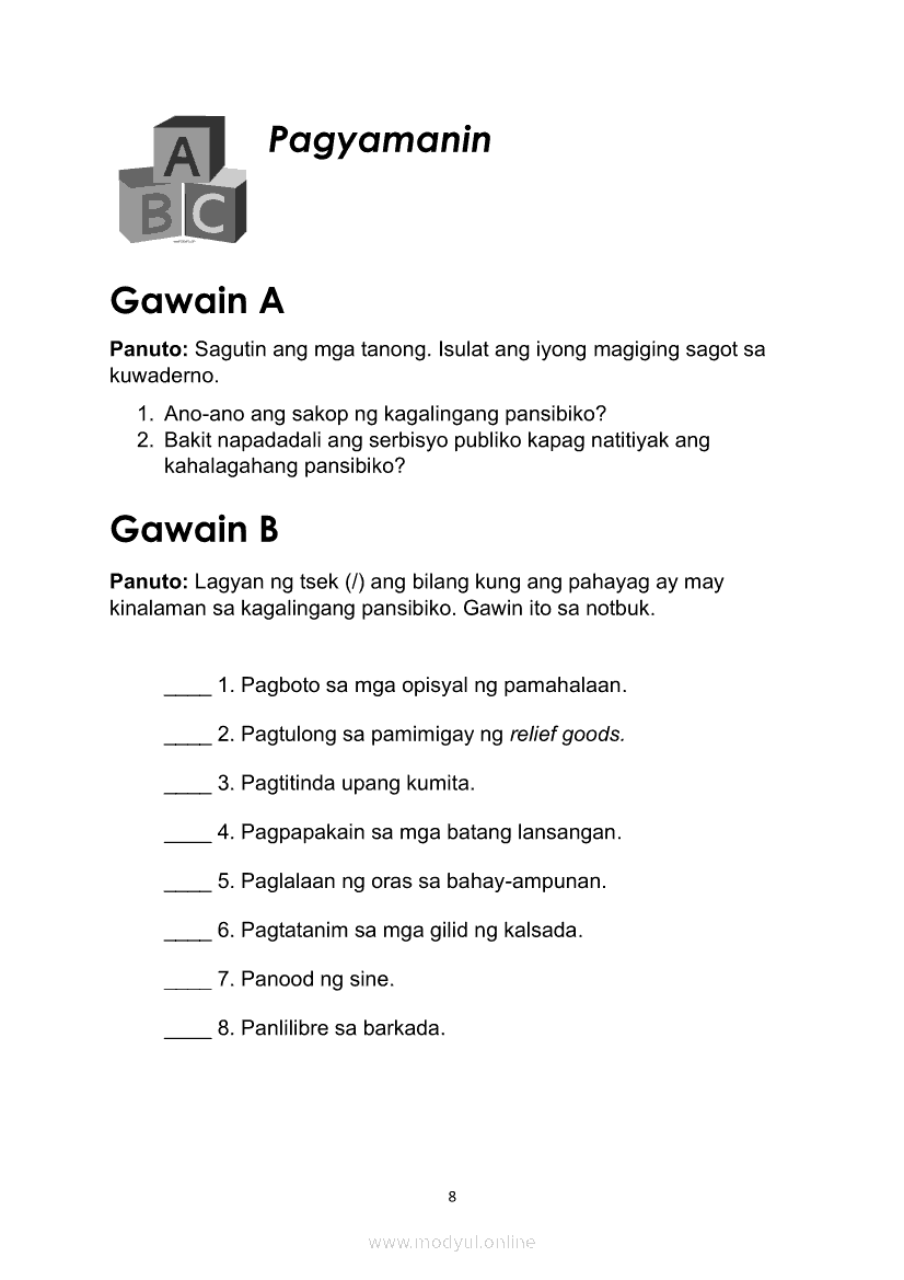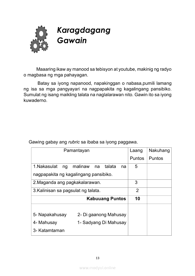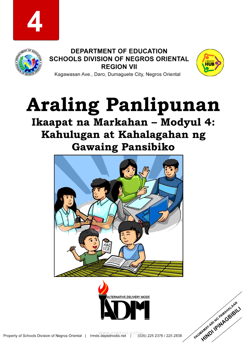 Araling Panlipunan Ikaapat na Markahan – Modyul 4: Kahulugan at Kahalagahan ng Gawaing PansibikoMay 26, 2021 Grade 4Kiumo M901 Tablet for Kids — comprehensive protection in learning, safety, and entertainment for as low as **₱2,399!. Araling Panlipunan 4 4th QuarterRelatedAraling Panlipunan Ikaapat na Markahan – Modyul 1: Ang Pagkamamamayang PilipinoAraling Panlipunan Ikaapat na Markahan – Modyul 5: Mga Gawaing Lumilinang sa Kagalingang PansibikoAraling Panlipunan Ikaapat na Markahan – Modyul 8: Bahaging Ginagampanan ng mga Mamamayan sa Pagsulong ng Kaunlaran ng BansaAraling Panlipunan Ikaapat na Markahan – Modyul 3: Mga Tungkulin ng Mamamayang PilipinoAraling Panlipunan Ikaapat na Markahan – Modyul 7: Pagpapahalaga ng Mamamayan sa Pagtataguyod ng Pambansang Kaunlaran