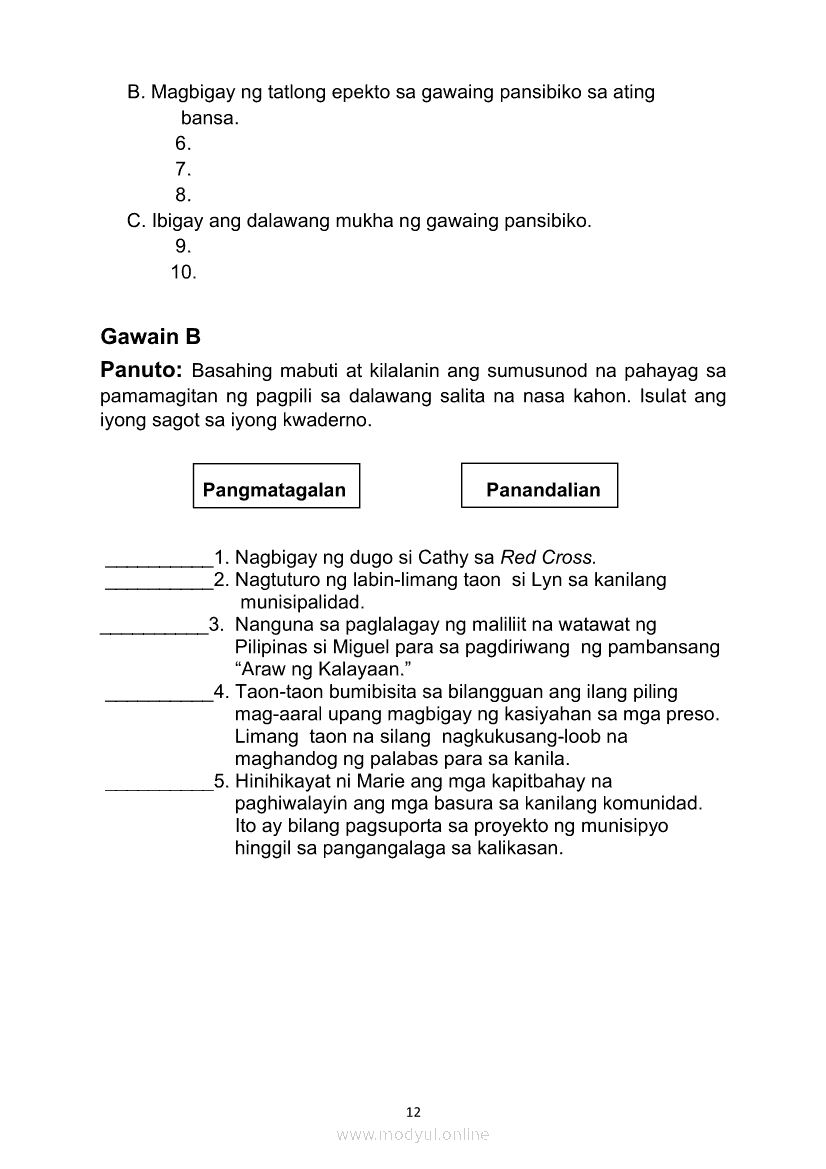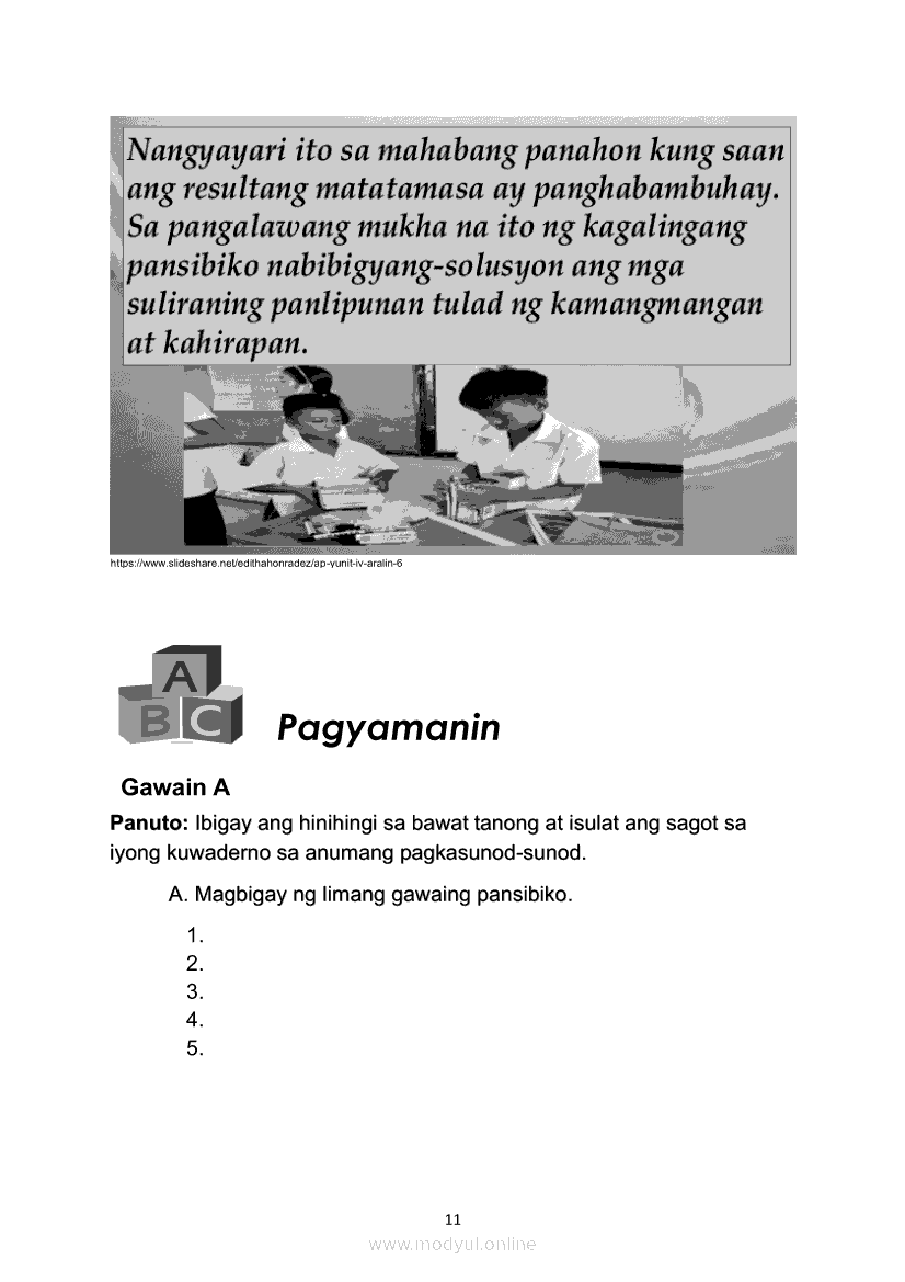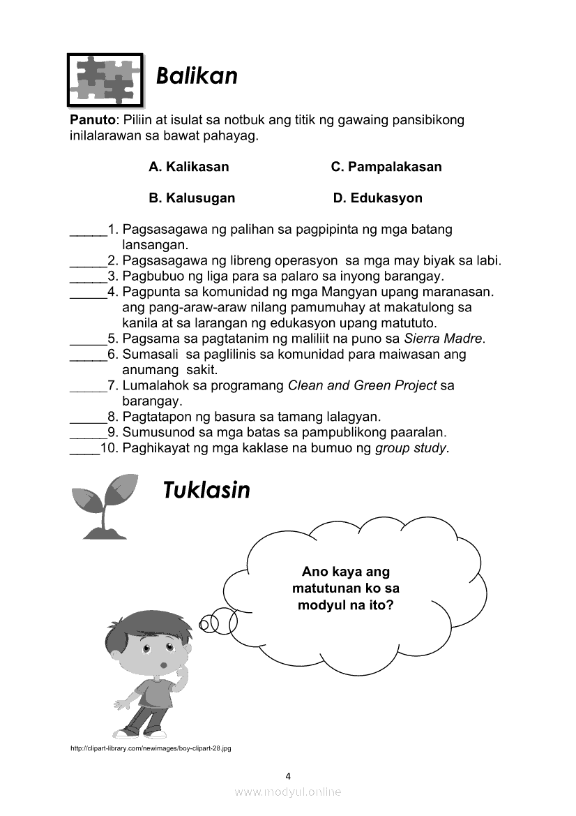 Araling Panlipunan Ikaapat na Markahan – Modyul 6: Mga Gawain at Epekto ng Gawaing PansibikoMay 26, 2021 Grade 4Kiumo M901 Tablet for Kids — comprehensive protection in learning, safety, and entertainment for as low as **₱2,399!. Araling Panlipunan 4 4th QuarterRelatedAraling Panlipunan Ikaapat na Markahan – Modyul 4: Kahulugan at Kahalagahan ng Gawaing PansibikoAraling Panlipunan Ikaapat na Markahan – Modyul 3: Mga Tungkulin ng Mamamayang PilipinoAraling Panlipunan Ikaapat na Markahan – Modyul 3: Mga Tungkulin ng Mamamayang PilipinoAraling Panlipunan Ikaapat na Markahan – Modyul 8: Bahaging Ginagampanan ng mga Mamamayan sa Pagsulong ng Kaunlaran ng BansaAraling Panlipunan Ikaapat na Markahan – Modyul 7: Pagpapahalaga ng Mamamayan sa Pagtataguyod ng Pambansang Kaunlaran