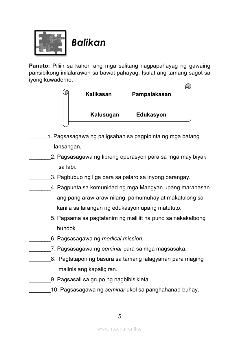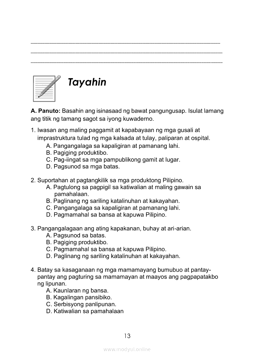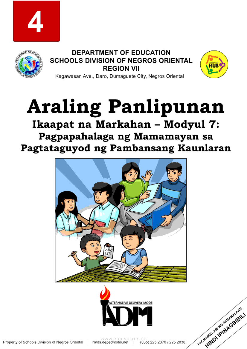 Araling Panlipunan Ikaapat na Markahan – Modyul 7: Pagpapahalaga ng Mamamayan sa Pagtataguyod ng Pambansang KaunlaranMay 26, 2021 Grade 4Kiumo M901 Tablet for Kids — comprehensive protection in learning, safety, and entertainment for as low as **₱2,399!. Araling Panlipunan 4 4th QuarterRelatedAraling Panlipunan Ikaapat na Markahan – Modyul 3: Mga Tungkulin ng Mamamayang PilipinoAraling Panlipunan Ikaapat na Markahan – Modyul 1: Ang Pagkamamamayang PilipinoAraling Panlipunan Ikaapat na Markahan – Modyul 8: Bahaging Ginagampanan ng mga Mamamayan sa Pagsulong ng Kaunlaran ng BansaAraling Panlipunan Ikaapat na Markahan – Modyul 5: Mga Gawaing Lumilinang sa Kagalingang PansibikoAraling Panlipunan Ikaapat na Markahan – Modyul 3: Mga Tungkulin ng Mamamayang Pilipino