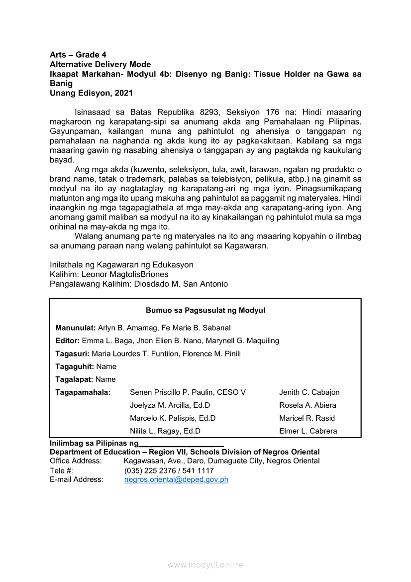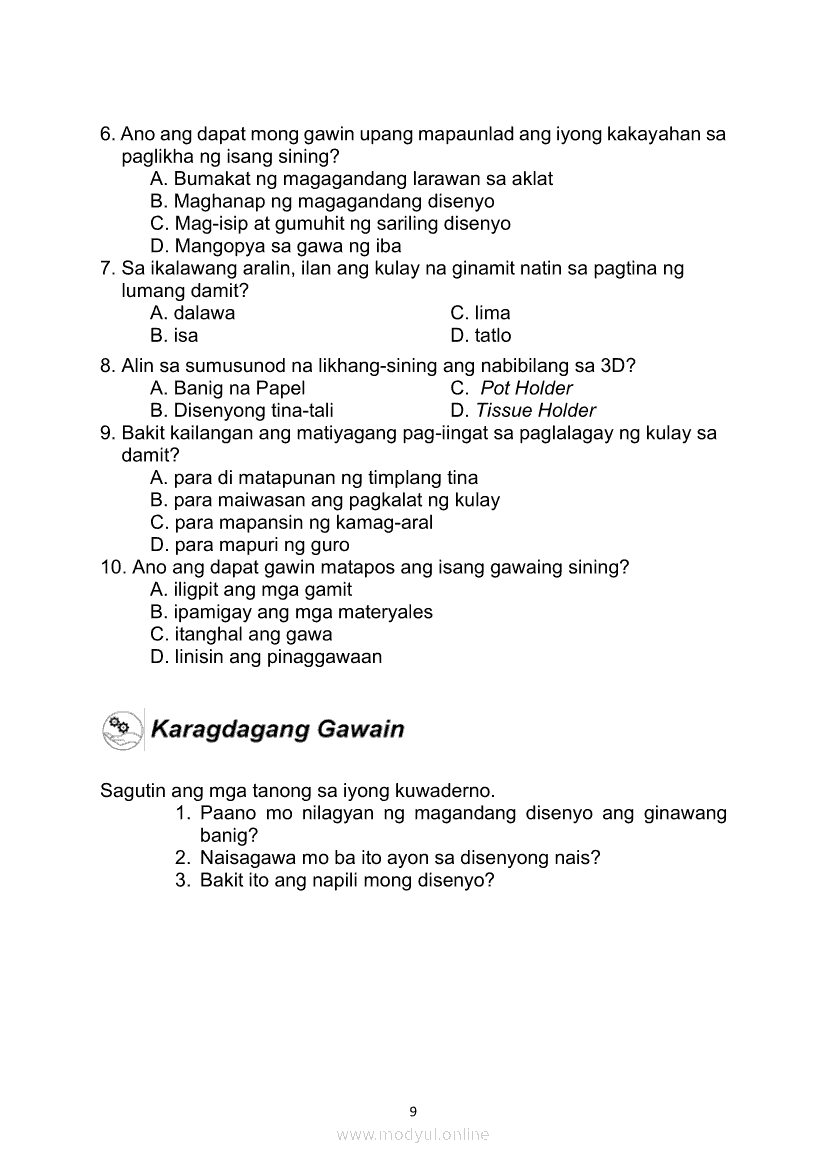 ARTS Ikaapat na Markahan – Modyul 4b: Disenyo ng Banig: Tissue Holder na Gawa sa BanigaMay 26, 2021 Grade 4Kiumo M901 Tablet for Kids — comprehensive protection in learning, safety, and entertainment for as low as **₱2,399!. MAPEH 4 4th QuarterRelatedP.E. Ikaapat na Markahan – Modyul 4b: Ang mga Kasanayan sa Pagsasayaw at Pagpapanatili sa Pagpapaunlad ng Physical FitnessMAPEH-HEALTH Ikaapat na Markahan – Modyul 4a: Mga Uri ng Kalamidad sa aking KomunidadMAPEH-HEALTH Ikaapat na Markahan – Modyul:4b Piliin ang Tama, Umiwas aa MasamaMusic Ikaapat na Markahan – Modyul 4b: HarmonyMUSIC Ikaapat na Markahan – Modyul 4a: Tempo at Texture