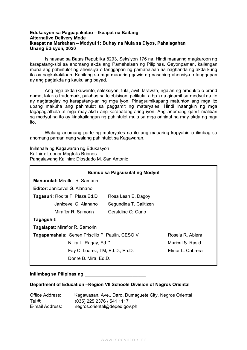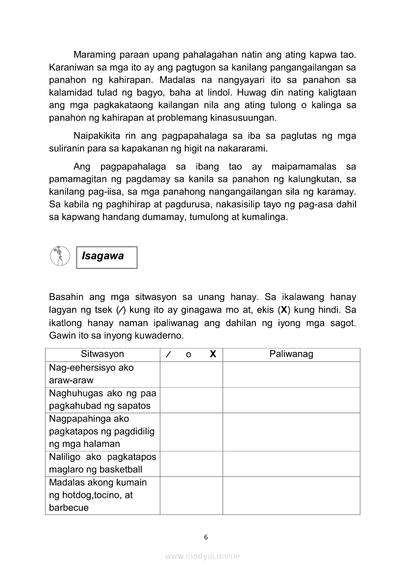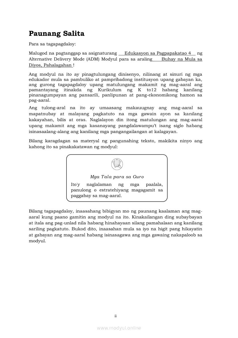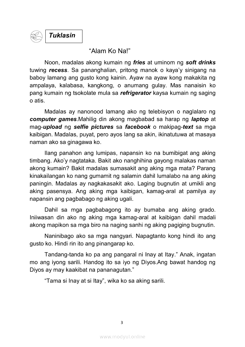 Edukasyon sa Pagpapakatao Ikaapat na Markahan – Modyul 1: Buhay na Mula sa Diyos, Pahalagahan (Linggo: Una)May 26, 2021 Grade 4Kiumo M901 Tablet for Kids — comprehensive protection in learning, safety, and entertainment for as low as **₱2,399!. Edukasyon sa Pagpapakatao 4 4th QuarterRelatedEdukasyon sa Pagpapakatao Ikaapat na Markahan – Modyul 5: Mga Yamang Likas, Ating Alagaan (Linggo: Ikalima)Edukasyon sa Pagpapakatao Ikaapat na Markahan – Modyul 2: Pamilya Tungo sa Isang Mapayapang Komunidad (Linggo: Ikalawa)Edukasyon sa Pagpapakatao Ikaapat na Markahan – Modyul 3: Mga Hayop na Ligaw at Endangered, Kalingain at Alagaan (Linggo: Ikatlo)Edukasyon sa Pagpapakatao Ikaapat na Markahan – Modyul 4: Pangangalaga sa Kapaligiran, Tanda ng Paggalang sa Diyos na Lumikha (Linggo: Ikaapat)MUSIC Ikaapat na Markahan – Modyul 4a: Tempo at Texture