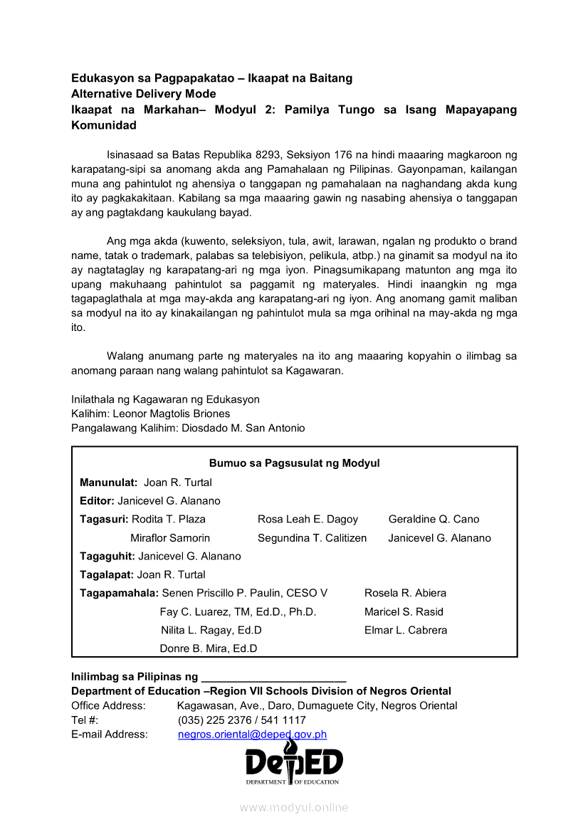 Edukasyon sa Pagpapakatao Ikaapat na Markahan – Modyul 2: Pamilya Tungo sa Isang Mapayapang Komunidad (Linggo: Ikalawa)May 26, 2021 Grade 4Kiumo M901 Tablet for Kids — comprehensive protection in learning, safety, and entertainment for as low as **₱2,399!. Edukasyon sa Pagpapakatao 4 4th QuarterRelatedEdukasyon sa Pagpapakatao Ikaapat na Markahan – Modyul 1: Buhay na Mula sa Diyos, Pahalagahan (Linggo: Una)Edukasyon sa Pagpapakatao Ikaapat na Markahan – Modyul 4: Pangangalaga sa Kapaligiran, Tanda ng Paggalang sa Diyos na Lumikha (Linggo: Ikaapat)Edukasyon sa Pagpapakatao Ikaapat na Markahan – Modyul 5: Mga Yamang Likas, Ating Alagaan (Linggo: Ikalima)Edukasyon sa Pagpapakatao Ikaapat na Markahan – Modyul 3: Mga Hayop na Ligaw at Endangered, Kalingain at Alagaan (Linggo: Ikatlo)EPP - ICT Markahan 4 - Modyul 7: PANANALIKSIK GAMIT ANG INTERNET
