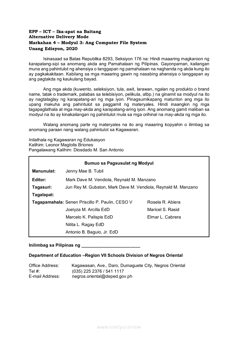 EPP - ICT Markahan 4 - Modyul 3: ANG COMPUTER FILE SYSTEMMay 26, 2021 Grade 4Kiumo M901 Tablet for Kids — comprehensive protection in learning, safety, and entertainment for as low as **₱2,399!. Edukasyong Pantahanan at Pangkabuhayan 4 4th QuarterRelatedEPP - ICT Markahan 4 - Modyul 4: LIGTAS AT RESPONSABLENG PAGGAMIT NG COMPUTER, INTERNET, AT E-MAILEPP - ICT Markahan 4 - Modyul 5: PAGGAWA NG DOKUMENTO NA MAY LARAWAN GAMIT ANG WORD PROCESSING TOOLEPP - ICT Markahan 4 - Modyul 2: KATANGIAN NG ISANG ENTREPRENEUREPP - ICT Markahan 4 - Modyul 8: PAGSAGOT AT PAGPAPADALA NG EMAIL NA MAY ATTACHMENTEPP - ICT Markahan 4 - Modyul 6: PAGGAWA NG TABLE AT TSART GAMIT ANG WORD PROCESSOR AT ELECTRONIC SPREADSHEET TOOL