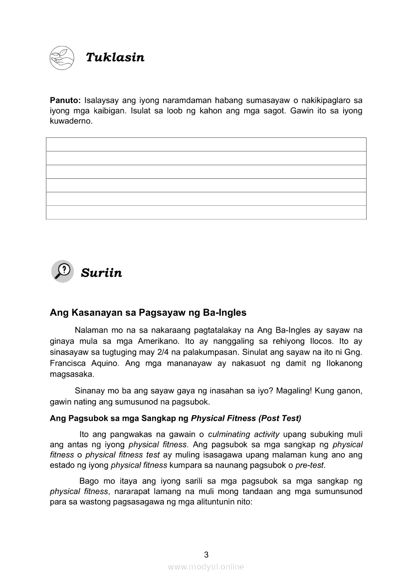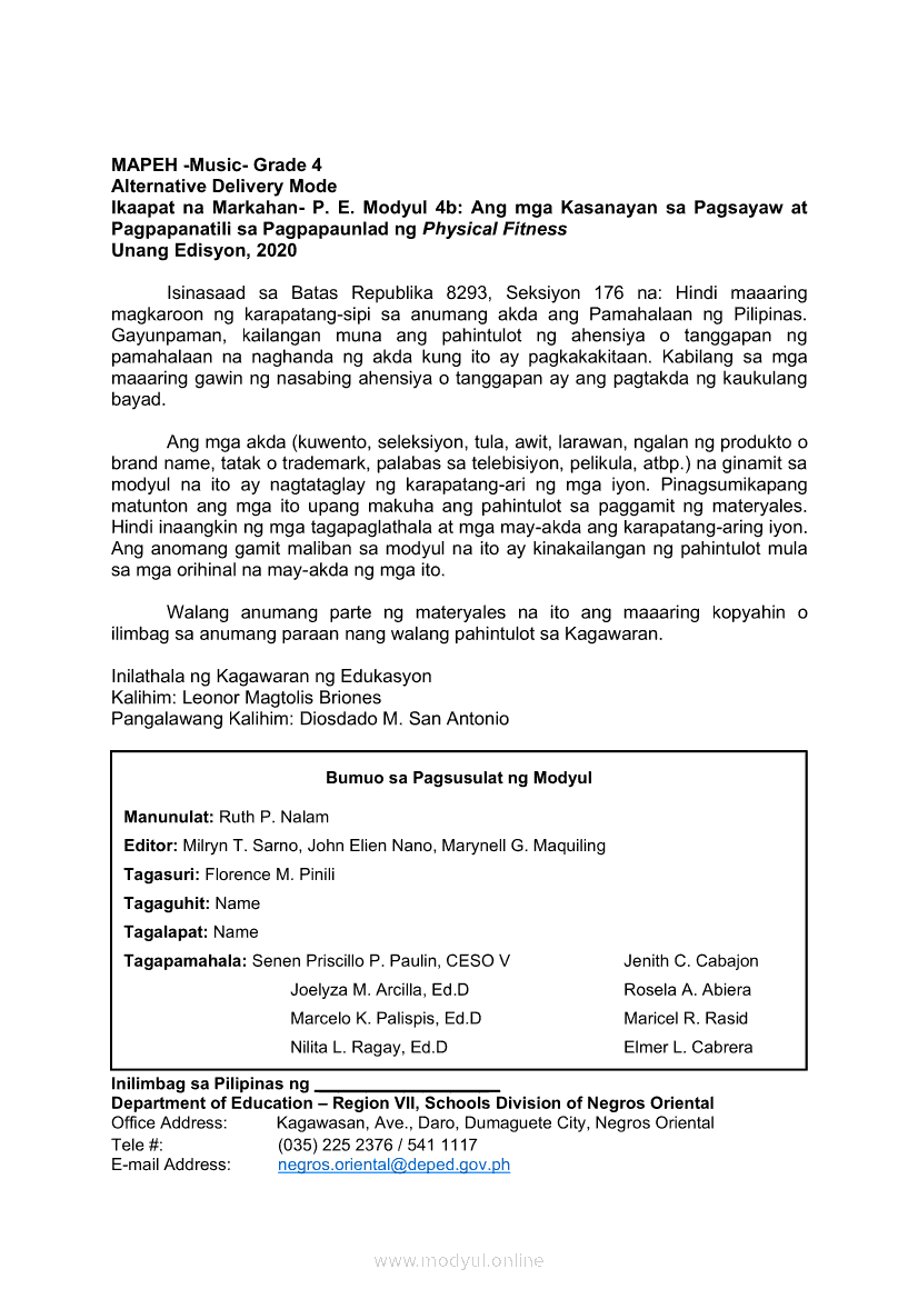 P.E. Ikaapat na Markahan – Modyul 4b: Ang mga Kasanayan sa Pagsasayaw at Pagpapanatili sa Pagpapaunlad ng Physical FitnessMay 26, 2021 Grade 4Kiumo M901 Tablet for Kids — comprehensive protection in learning, safety, and entertainment for as low as **₱2,399!. MAPEH 4 4th QuarterRelatedMAPEH-HEALTH Ikaapat na Markahan – Modyul 4a: Mga Uri ng Kalamidad sa aking KomunidadMAPEH-HEALTH Ikaapat na Markahan – Modyul:4b Piliin ang Tama, Umiwas aa MasamaARTS Ikaapat na Markahan – Modyul 4b: Disenyo ng Banig: Tissue Holder na Gawa sa BanigaP.E. Ikaapat na Markahan–Modyul 4a: Pagpapanatili at Pagpapaunlad ng Physical FitnessMusic Ikaapat na Markahan – Modyul 4b: Harmony