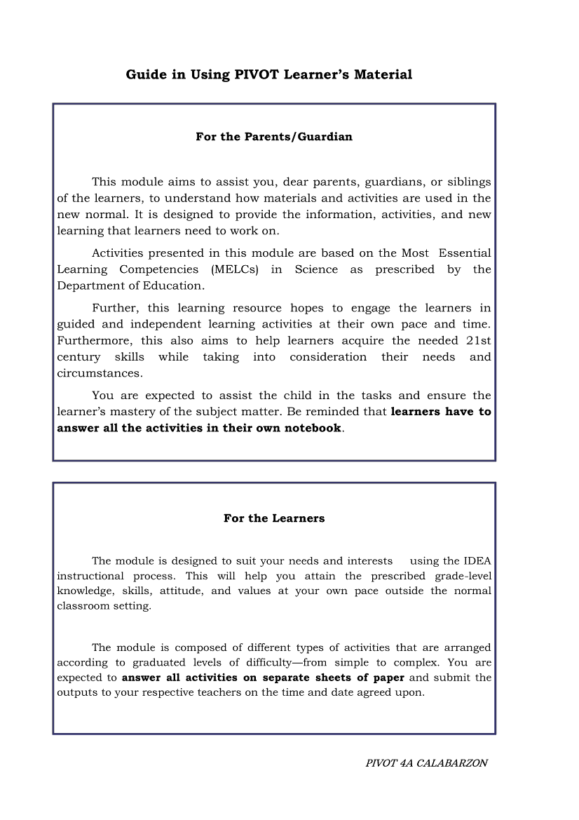Science 4 PIVOT Module ScienceApr 22, 2021 Grade 4Kiumo M901 Tablet for Kids — comprehensive protection in learning, safety, and entertainment for as low as **₱2,399!. Science 4RelatedLENGTH OF SHADOWS AS THE POSITION OF THE SUN CHANGES For Science Grade 4 Quarter 4 / Week 6USES OF WATER FROM DIFFERENT SOURCES For Science Grade 4 Quarter 4 / Week 2TYPES AND CHARACTERISTICS OF SOIL For Science Grade 4 Quarter 4 / Week 1THE USES OF SIMPLE WEATHER INSTRUMENTS For Science Grade 4 Quarter 4 / Week 4EFFECTS OF THE SUN TO HUMAN ACTIVITIES For Science Grade 4 Quarter 4 / Week 7